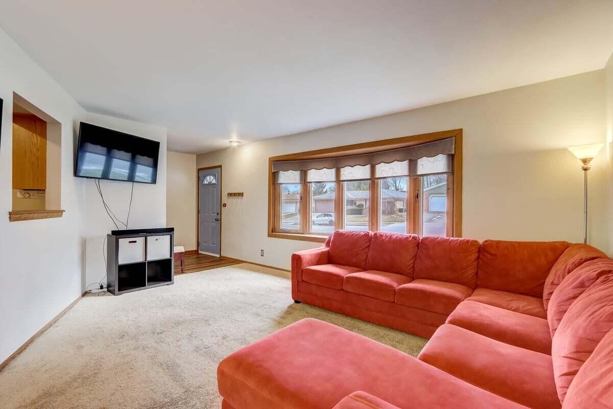 Beautifully maintained Clayton Crest neighborhood 3 bedroom 1.5 bath ranch is centrally located with excellent freeway access. Open concept living/dining room. Kitchen features breakfast bar, new flooring & abundant cabinetry. Family room with NFP. 3 season room is perfect for entertaining. Main bathroom updated with tiled bathtub.Lower level rec room offers additional living space. Backyard offers a patio and plenty of green space. UPDATES: Furnace, A/C, HWH, Roof, Soffits, Trim (appx 2016), Flooring LR,FR,DR,Kitchen (appx 2022), Microwave/stove (appx 2020)